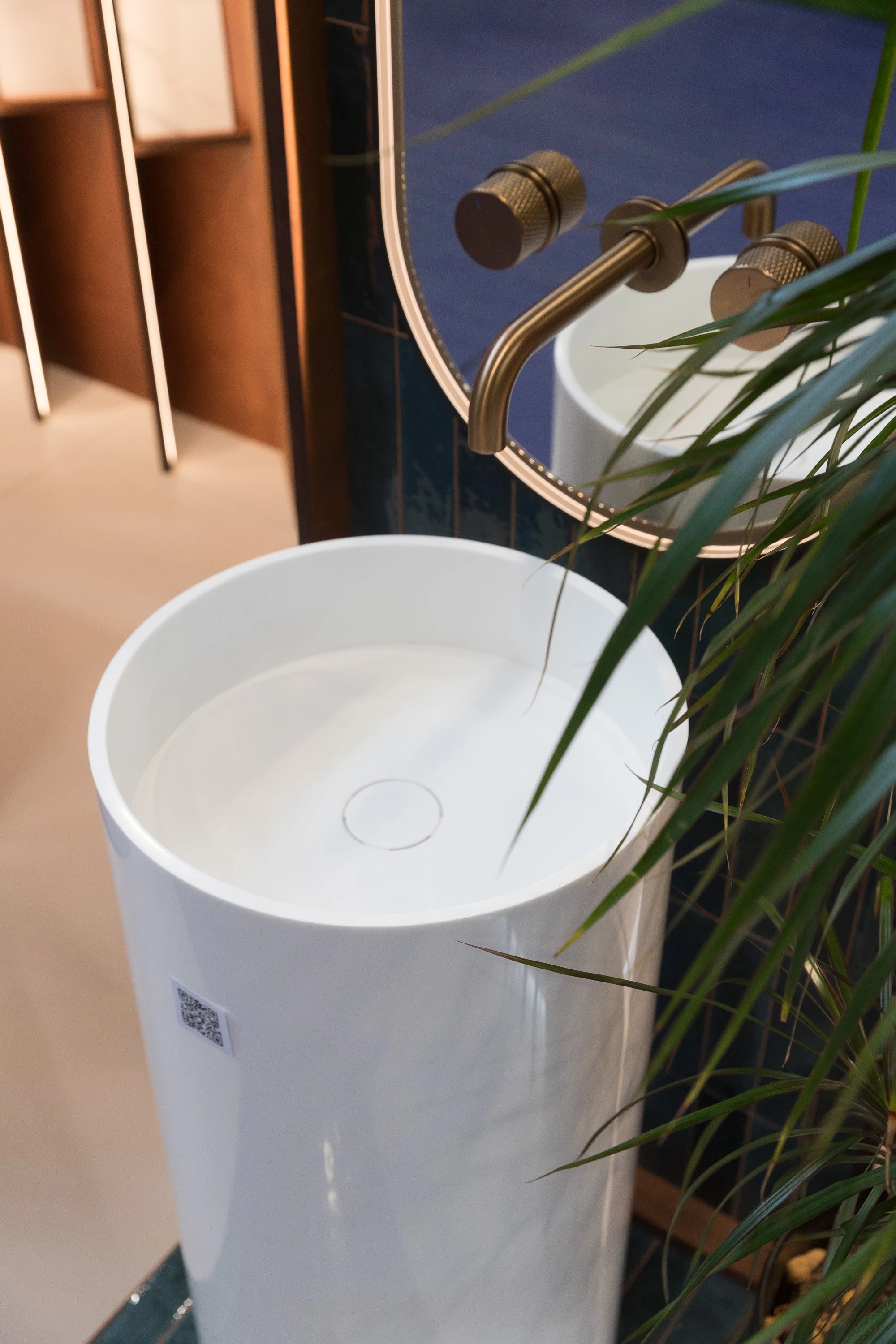 Первая - зеркало с подсветкой, на стене, облицованной керамогранитом Marazzi Lume, который переходит в пол. Выглядит очень непривычно, но потрясающе. К слову, за три дня выставки в зеркале было сделано более 250 селфи! Отличная статистика.