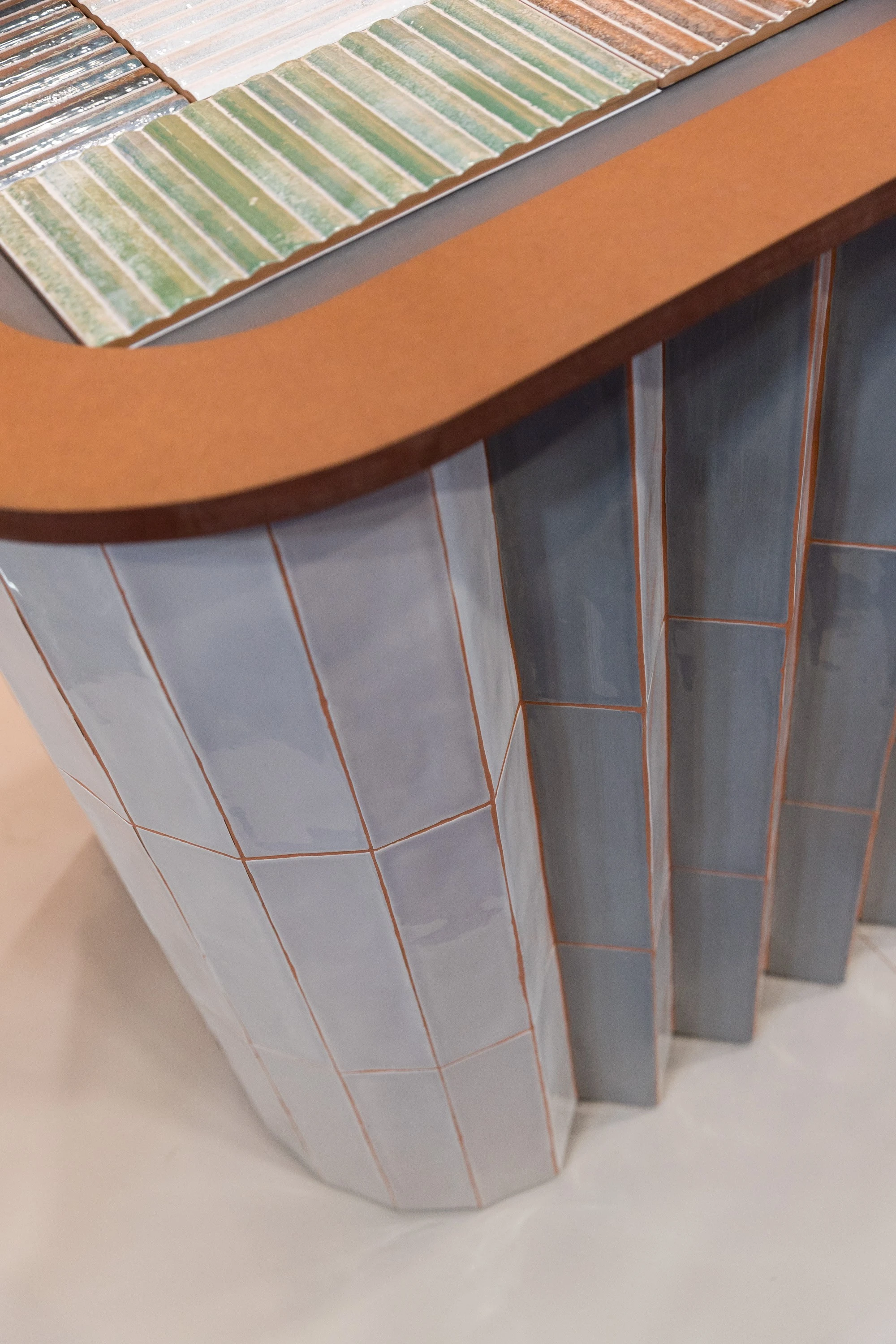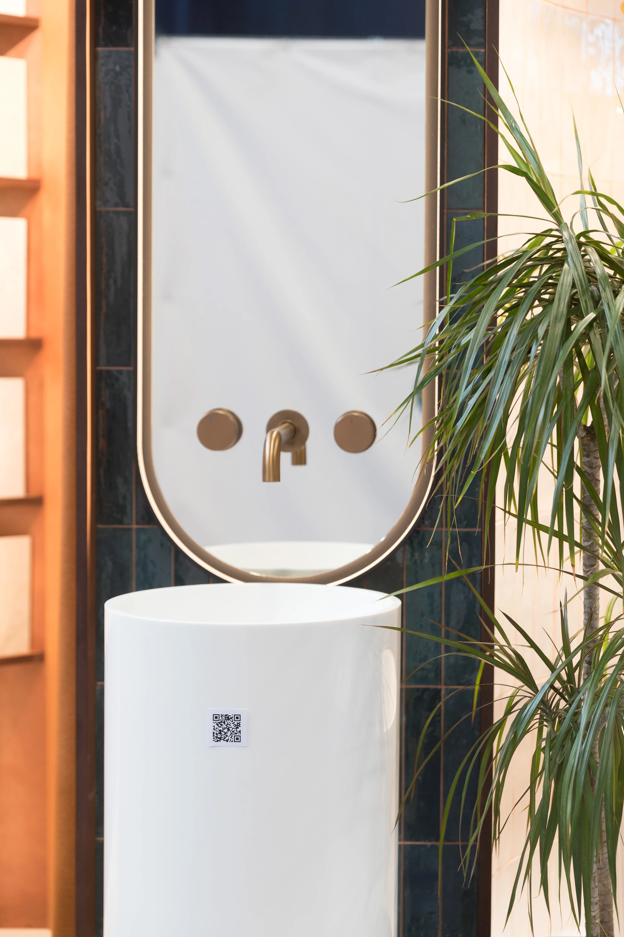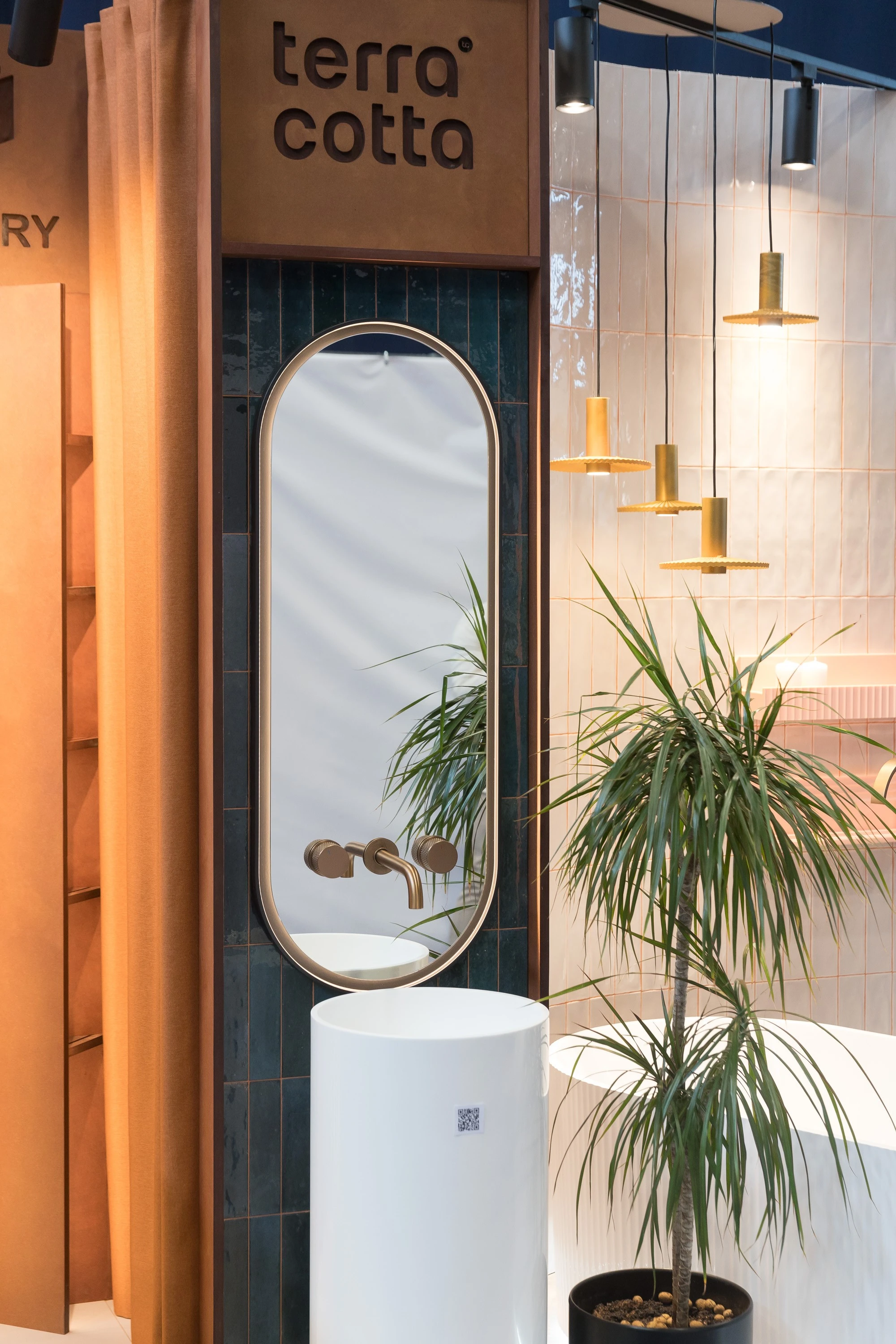 Концепция стенда Терра Котта - библиотека керамической плитки: на стеллажах-полках в терракоттовых цветах, словно книги, представлены образцы керамогранита фабрики Tubadzin, которая составляет основу ассортимента наших салонов. На обратной стороне каждого образца указана краткая информация о плитке, её размерном ряде, а также qr-код для перехода в на сайт в каталог каждой коллекции для уточнения актуальной стоимости и наличия. Подбирая нужную текстуру, можно расположить нужные образцы на специальном столике, обложенном мелкоформатной испанской плиткой Mainzu, получив импровизированный мудборд. Удобно и красиво!