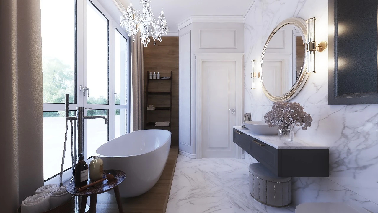 Проект дизайнера Дедулева Дениса с плиткой Ibero Selecta carrara white plus и Marazzi Treverkmore